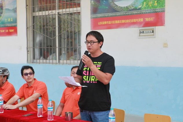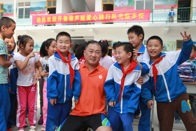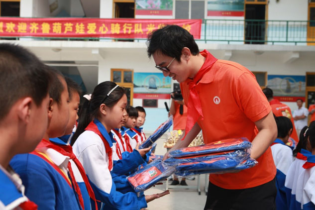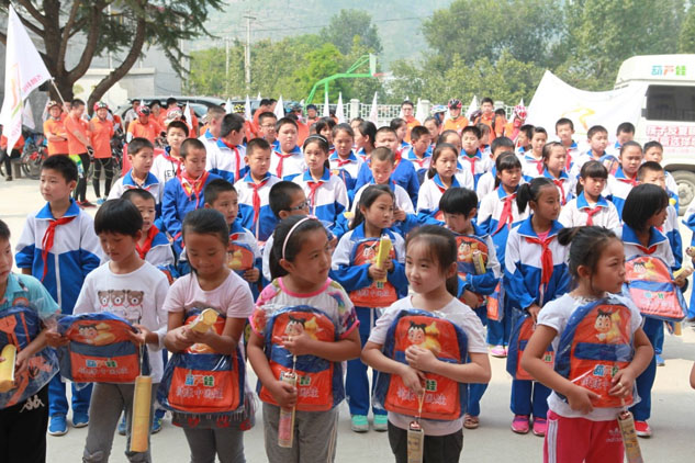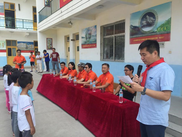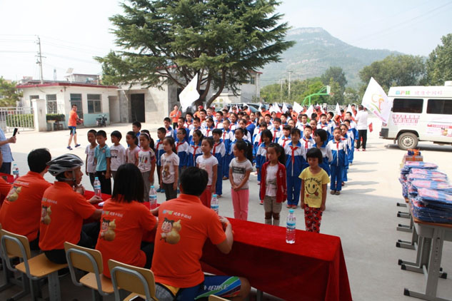當走進高而鄉出泉溝小學,騎行隊員們根據孩子們的需求帶來了眾多開學的禮品,有long8龍8網站特制書包、特制作業本、筆等學習用品,另有杭州天堂傘為同學們撐起一片蔚藍的天空,讓我們感受到了所有騎行隊員的用心。山東電視臺知名主持人樹輝全程參與并主持捐助儀式