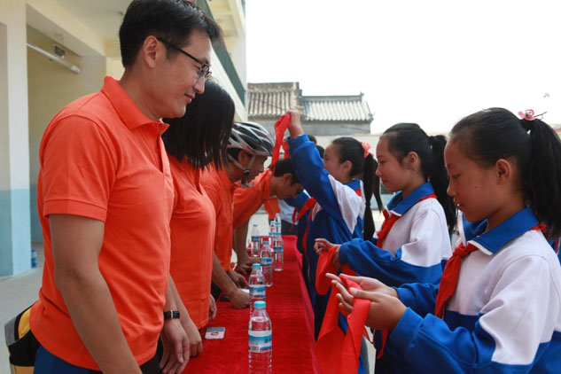 孩子們收到long8 -?龍8(中國)唯一官方網站贈送的特制書包等學習用品,露出甜蜜的笑顏。在明媚的陽光中,處處都是微笑的芬芳,孩子們學習生活的每個日子都充滿了新的希望。小學生們滿懷感恩地為long8龍8網站騎行隊的代表系紅領巾