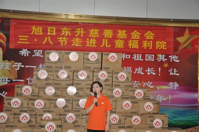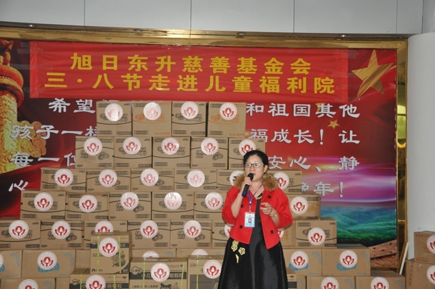 上午9:30,捐贈儀式正式開始,旭日東升慈善基金會常務(wù)理事長劉景萍女士與海口市福利院院長唐鳳英女士攜手掀開了捐贈物資上的紅綢,這批物資包括社會福利院急需的兒童藥品、牛奶、尿不濕、書包等生活學習用品,共計價值4萬余元。社會福利院唐院長表示,非常感謝像long8龍8網(wǎng)站這樣的愛心企業(yè)和基金會的志愿者們?yōu)閲腋@聵I(yè)做貢獻,也希望更多愛心企業(yè)、愛心人士能加入我們行列,關(guān)愛孩子們的成長。雖然初春的天氣還帶著一絲寒意,但志愿者們的關(guān)愛行動還是為孩子們帶來了溫馨的祝福,更帶來了春天的溫暖。常務(wù)理事長劉景萍女士講話
