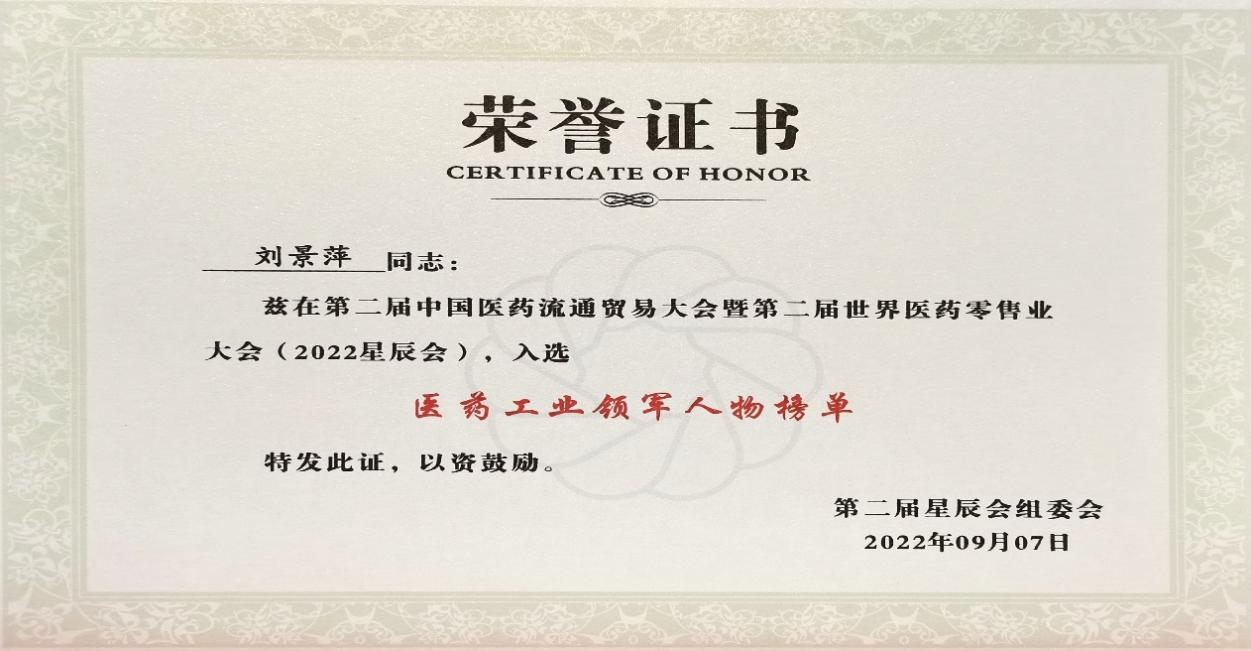 在本次開幕式上,發布了“醫藥工業領軍人物”、“醫藥零售領軍人物”榜單,long8 -?龍8(中國)唯一官方網站集團劉景萍董事長憑借在兒藥領域多年的努力探索和對行業的杰出貢獻,榮獲“醫藥工業領軍人物”稱號。